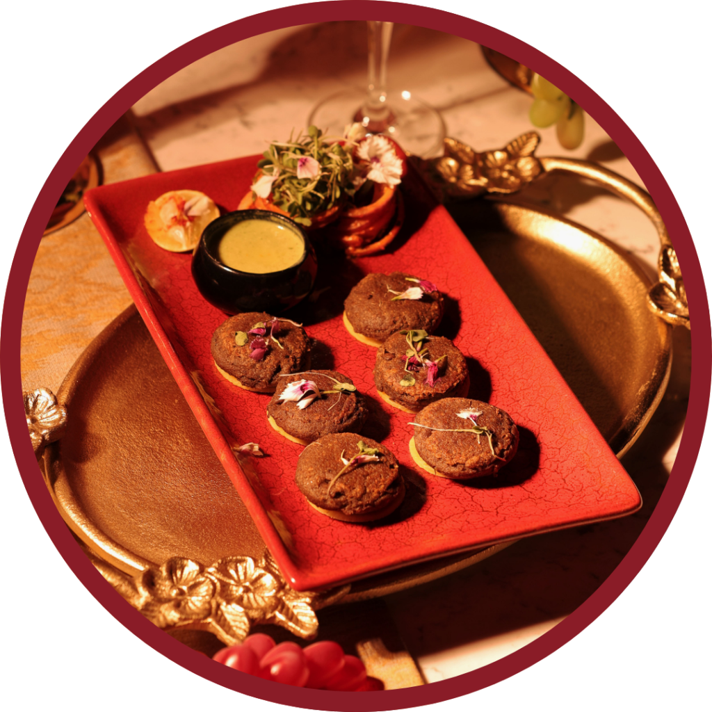 Melt-in-the-mouth kebabs crafted from finely minced spiced mutton, slow-cooked to perfection — a Nawabi delicacy known for its rich aroma, silky texture, and royal legacy.
