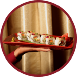 A refreshing twist on sushi — crisp water chestnuts and smooth cream cheese wrapped in seasoned rice and nori, offering a delicate balance of crunch, creaminess, and subtle umami.